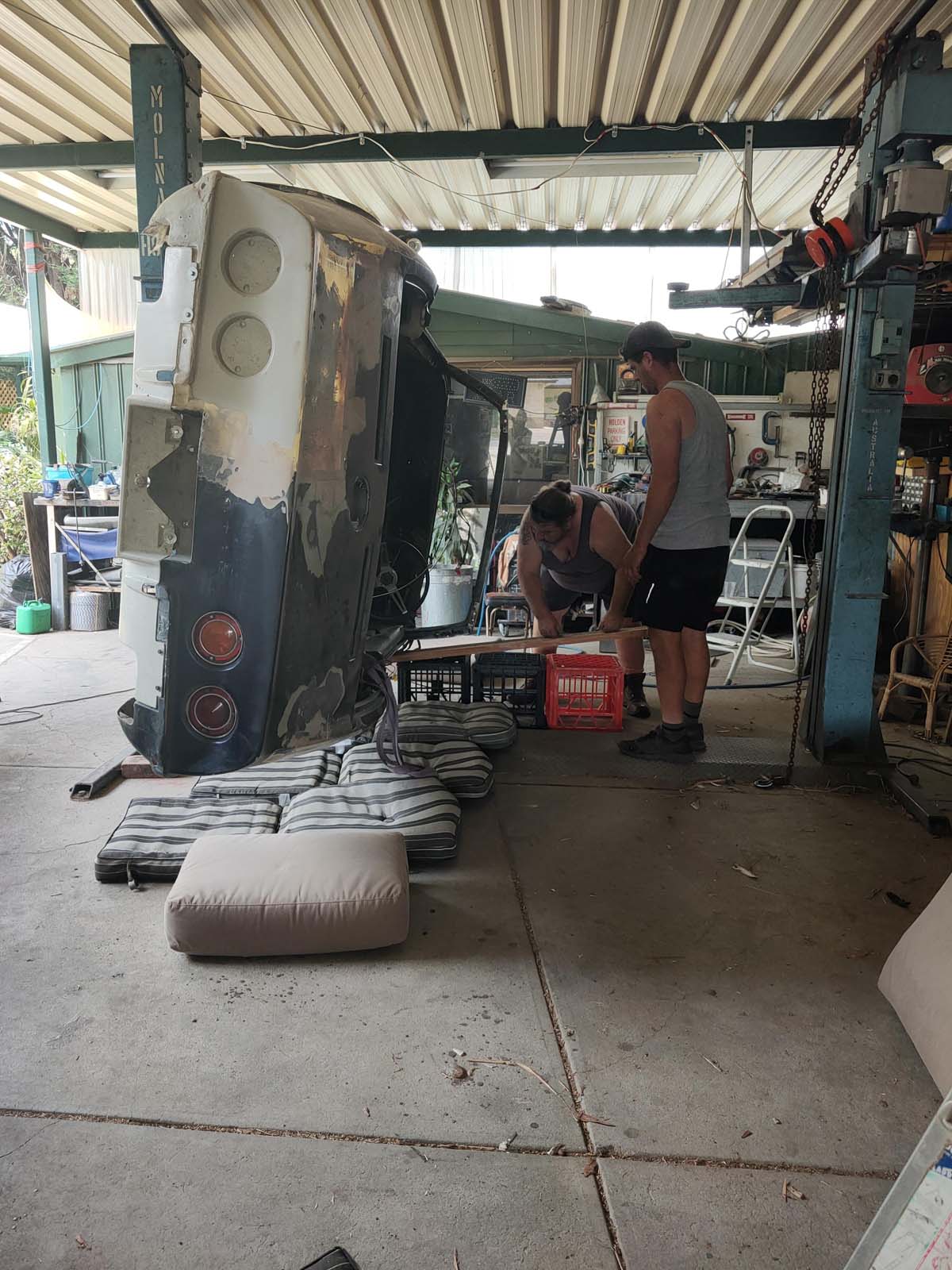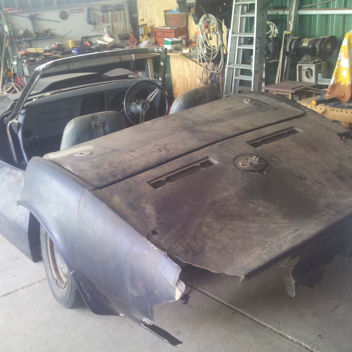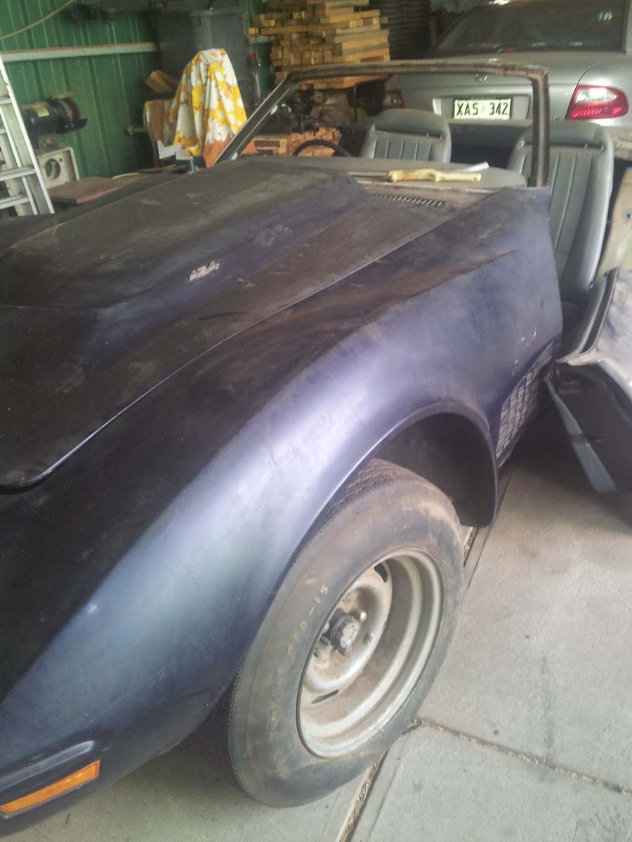 The Corvette hit a gum tree 45 years ago and was parked up in a shed. I had to bring her home.
